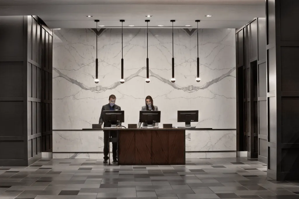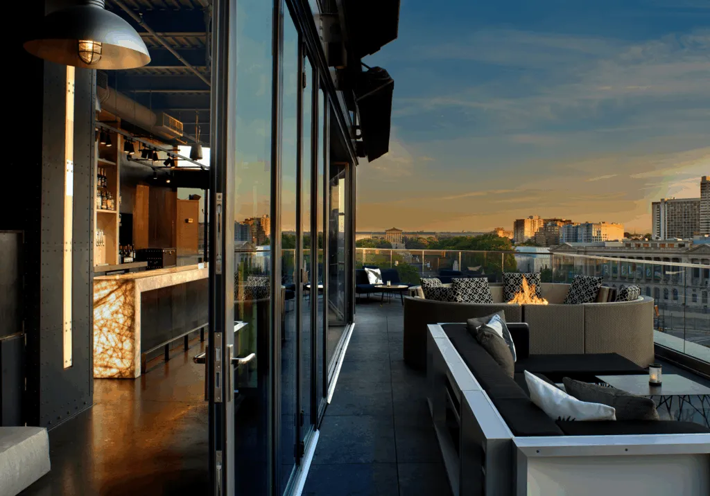 The Logan Hotel rebranding project included renovations to the existing entrance, porte-cochére, ballroom, meeting rooms, pre-function areas, restaurant and bar, pool and spa, fitness area, guestrooms, suites, and corridors. Although the majority of the work occurred within the existing building footprint, the project also included the conversion of an existing roof area into a rooftop bar. The ballroom and pre-function area were also expanded into the existing courtyard.